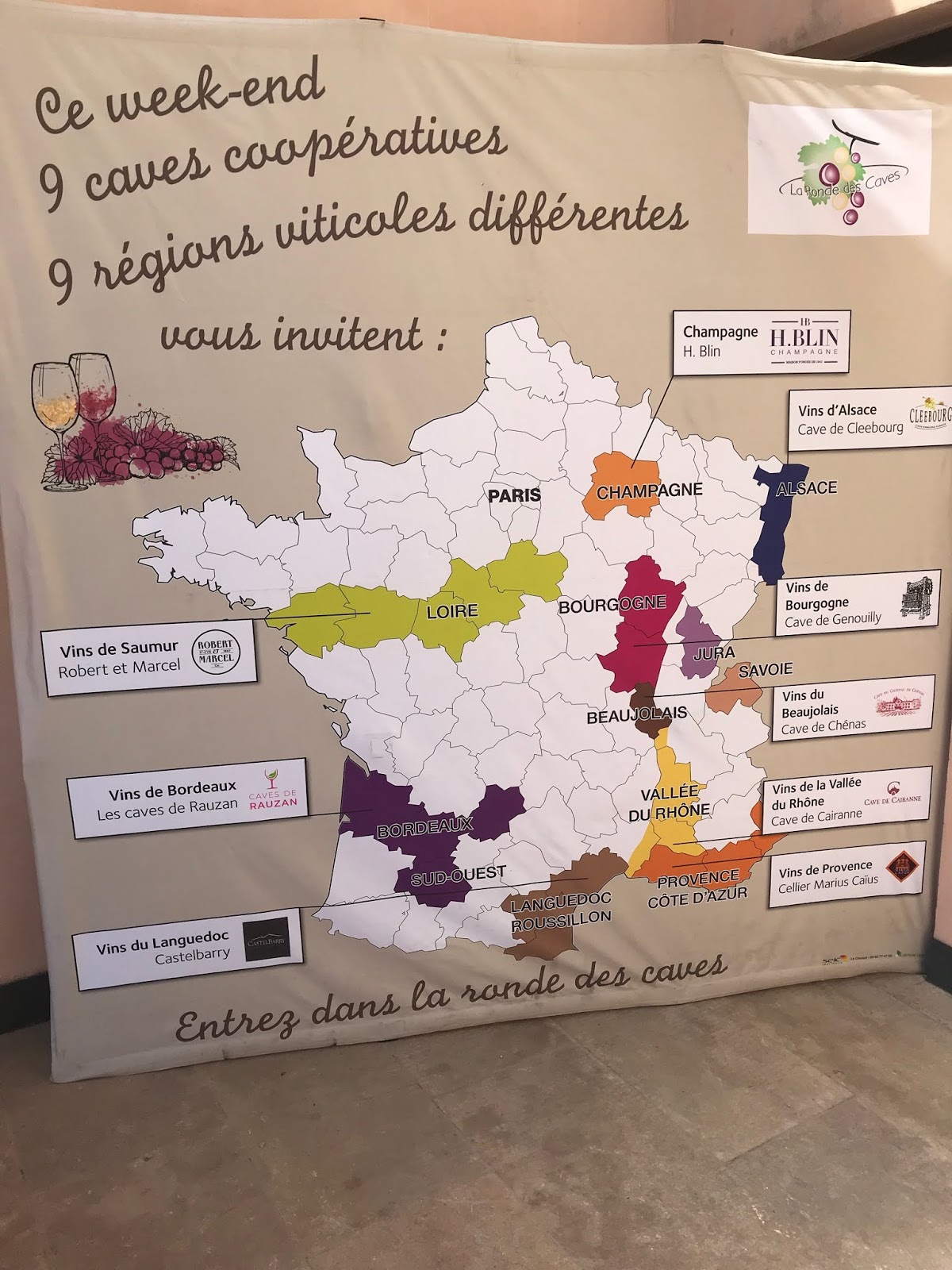 After a lunch comprised of goodies from the market we headed to the Foire aux Vins at Camille Cayran, the Cairanne wine cooperative. This fair featured 9 producers from across France who all set up in the heart of the winery.